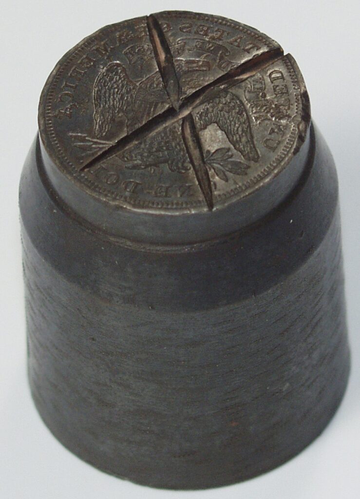 When a die reached the end of its useful life, the Mint “cancelled” it. This was a security measure to deface the design, preventing anyone from using the discarded tool to strike illegal or counterfeit coins. As you can see in the photos, this die was defaced with a deep, rim-to-rim “X” carved into the steel.